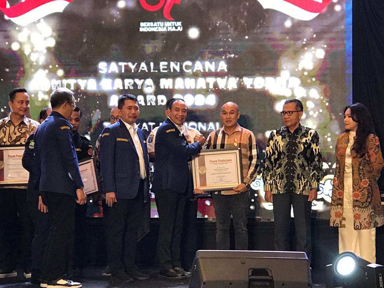 Adhyaksanews. Bangka Selatan, Dalam rangka Bulan Bhakti Nasional Karang Taruna yang ke 64 tahun 2024, Pembina Umum Karang Taruna Kabupaten Bangka Selatan, Bupati Bangka Selatan, Riza Herdavid menerima penghargaan Satyalencana Adhitya Karya Mahatva Yodha yang diserahkan langsung oleh Ketua Umum Pengurus Nasional Karang Taruna, Didik Mukrianto. Penyerahan dilaksanakan di Hotel Mason Pine Bandung (15/10/2024).