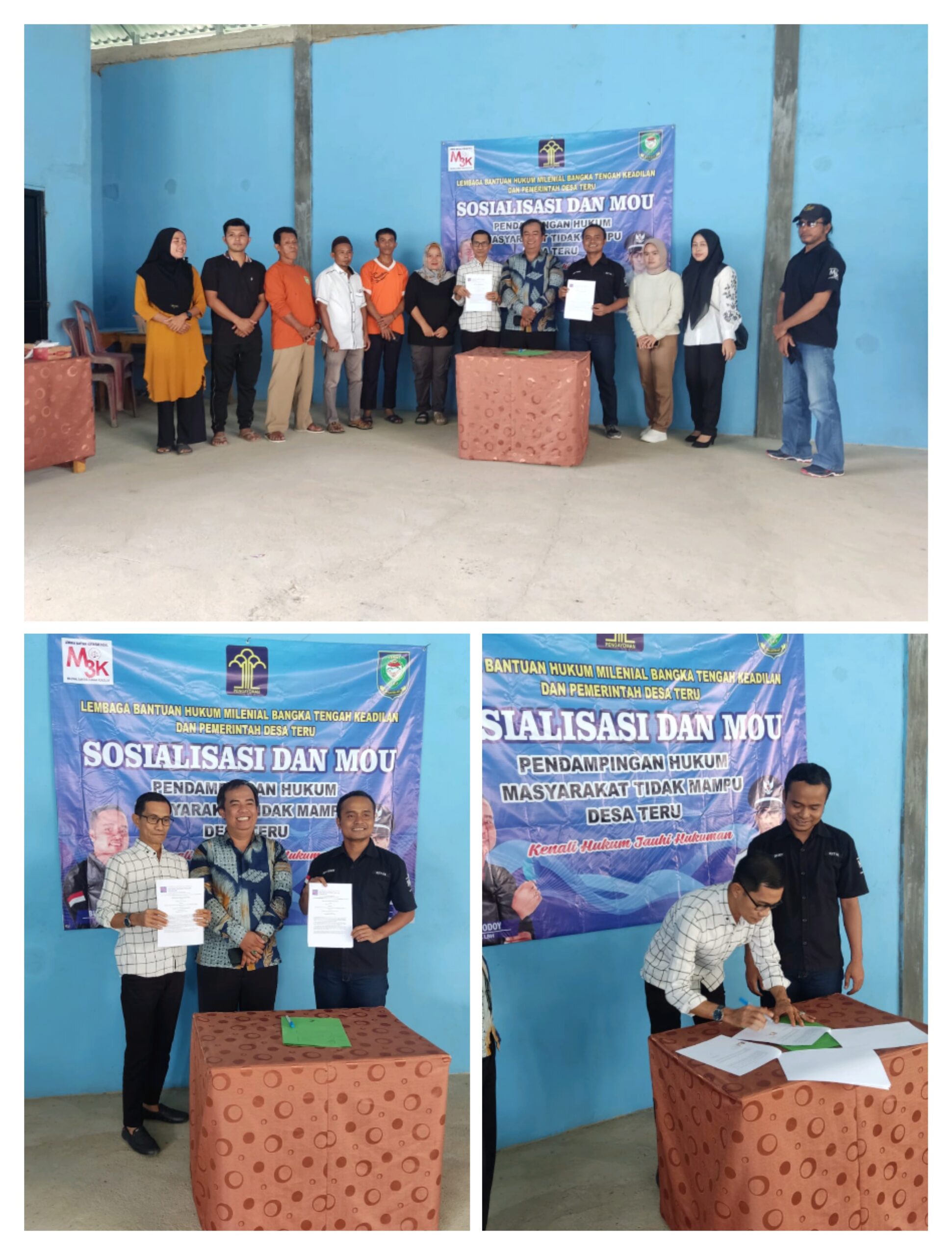 Pemerintah desa teru melakukan terobosan baru melakukan mou pendampingan hukum bersama lembaga bantuan hukum milenial Bangka tengah keadilan jum.at 01/11/2024 di kantor pemdes teru.
