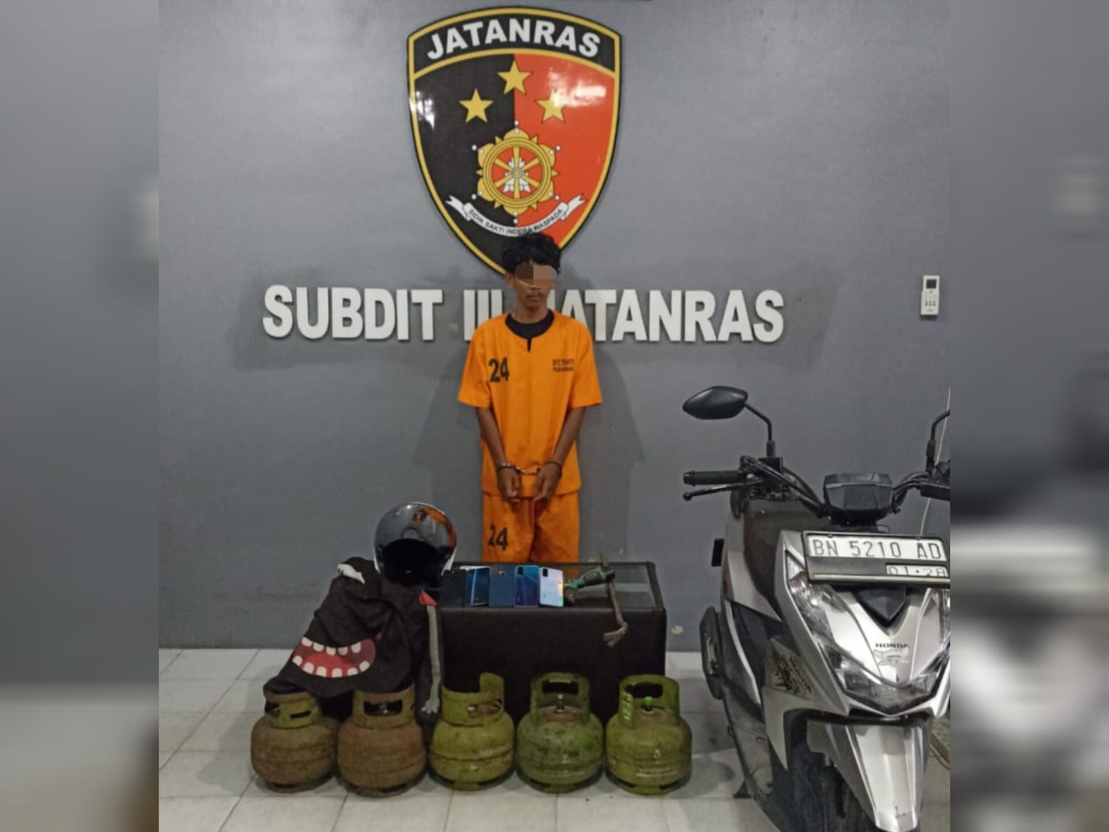Ditambahkan Fauzan, barang bukti yang berhasil diamankan dari pelaku yakni 1 unit sepeda motor, 1 buah Linggis besar, 1 buah Bor Batre, 5 buah tabung gas 3 Kg serta 4 unit Handphone.