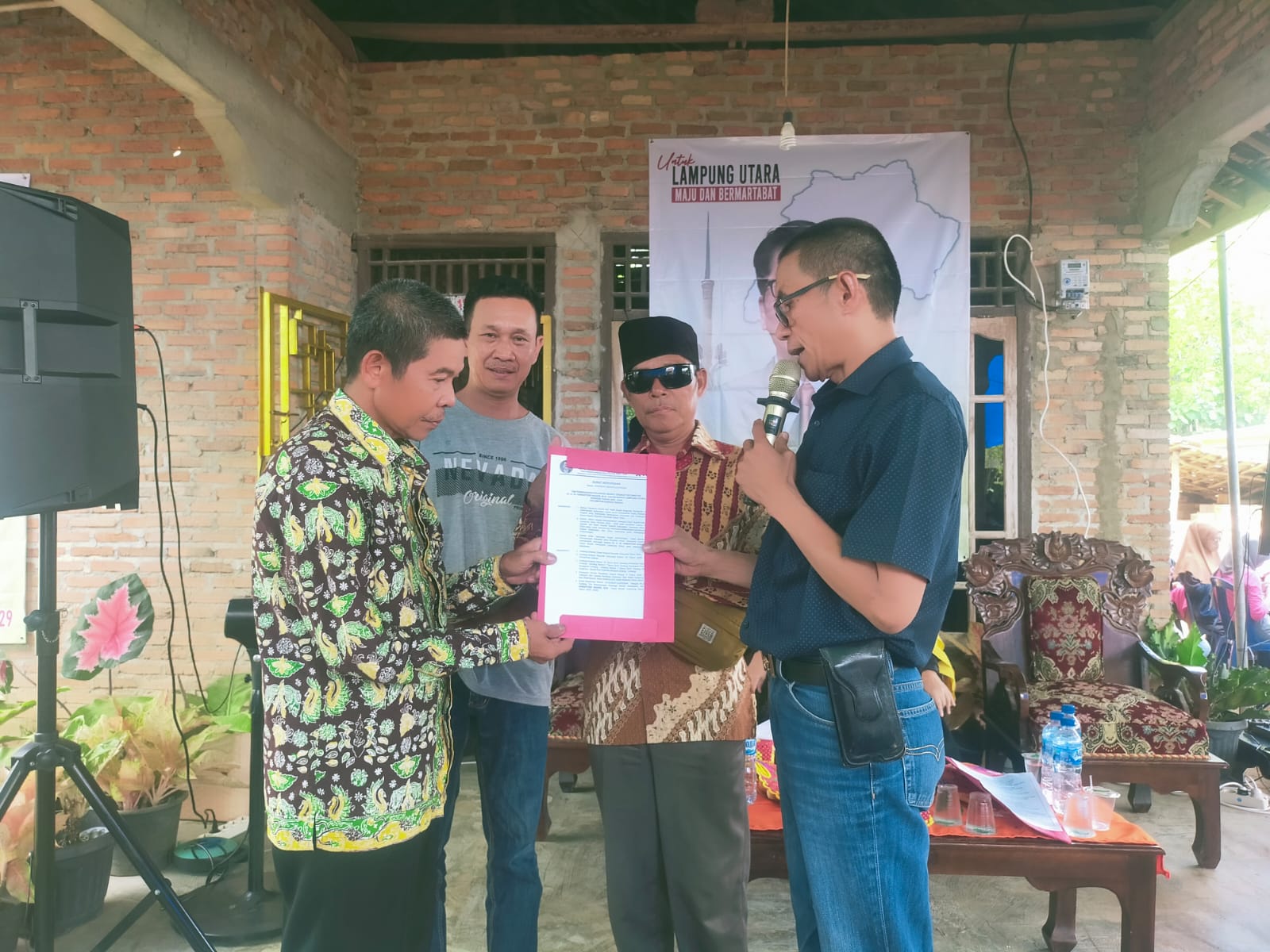 Adhyaksanews. Lampung Utara -- Pengkuhan Tim Pemenangan Keluarga Sehati Kecamatan Sungkai Tengah Kabupaten Lampung Utara di laksanakan di Desa Melungun Ratu.