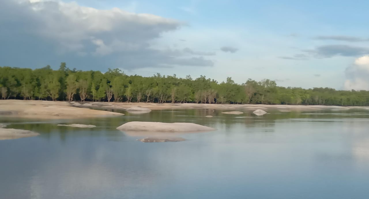 Ternyata didepan muara masuk sungai Rumpak nampak gundukan pasir atau beting akibat TI Rajuk tower yang ramai sebelumya sempat menghambat aktivitas nelayan setempat untuk keluar masuk muara tersebut.