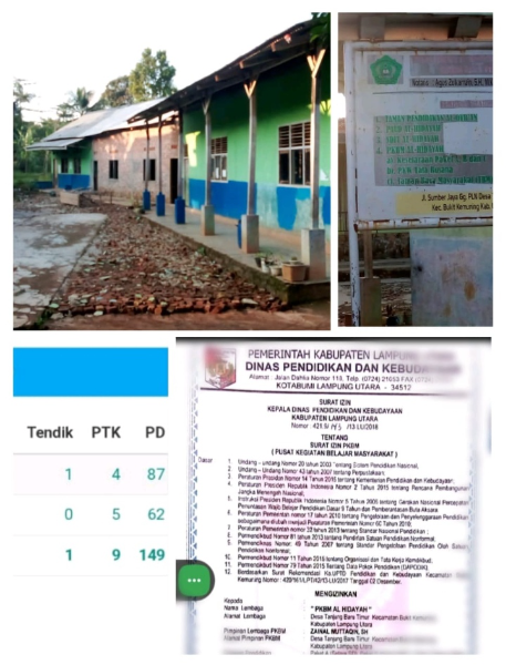 PKBM Al - Hidayah Desa Tanjung Baru Timur Kecamatan Bukit Kemuning ini juga di duga patut menjadi bahan pertanyaan juga terkait jumlah Peserta didiknya,dan penyaluran dana dari pemerintah terkait Biaya Operasional Penyelenggaraan/BOP PKBM maupun dan BOS SDIT Al - Hidayah tersebut patut di pertanyakan dan menjadi bahan untuk di periksa oleh pihak Aparatur Pengawas Intern Pemerintah (APIP) yaitu dalam hal ini Inspektorat Kabupaten Lampung Utara.