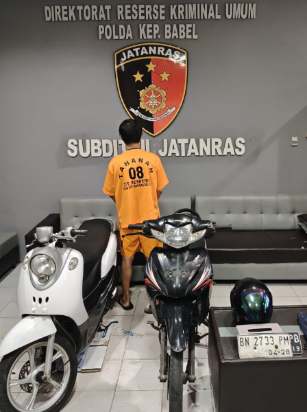 Pangkalpinang, Adhyaksanews. -- --Seorang pria di Pangkalpinang ditangkap Tim Jatanras Ditreskrimum Polda Bangka Belitung, Senin (19/1/26) malam lantaran mencuri motor disebuah Pabrik Es Semabung Lama Pangkalpinang.