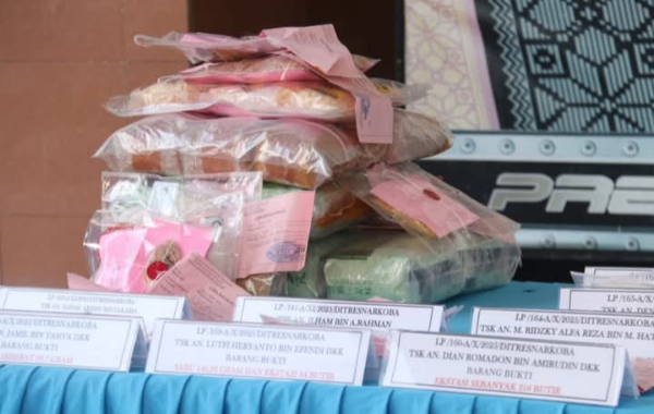 Palembang, Adhyaksanews. -- --Direktorat Reserse Narkoba Polda Sumsel menggelar Konferensi Pers Pemusnahan Barang Bukti Narkotika di Lobby Gedung Prof. Dr. Awaloedin Djamin, M.PA pada Jumat (21/11) pukul 09.00 WIB. Kegiatan ini berlangsung sebagai bentuk komitmen Kepolisian dalam memberantas peredaran narkoba di wilayah Sumatera Selatan.
