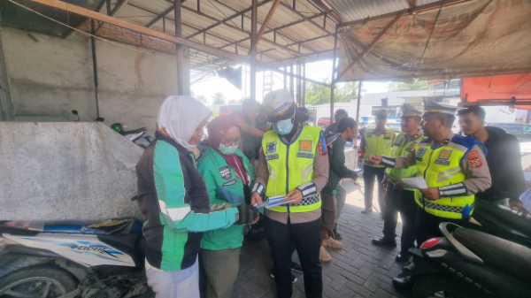 Petugas di lapangan memberikan edukasi kepada pengendara roda dua dan pengemudi ojek online (ojol) terkait pentingnya mematuhi aturan lalu lintas. Salah satu hal yang ditekankan adalah penggunaan helm berstandar SNI bagi pengendara maupun penumpang motor. Tak hanya itu, tali helm juga harus dikunci atau dikaitkan dengan benar untuk menghindari risiko cedera serius saat terjadi kecelakaan.