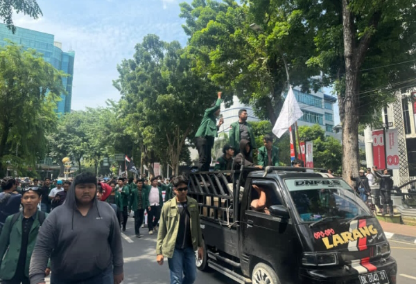 Aksi yang digelar ratusan massa dengan tuntutan penghapusan tunjangan mewah anggota DPR pada awalnya berjalan tertib, namun kemudian memanas setelah sekelompok massa merobohkan pagar gerbang DPRD dan melakukan pelemparan batu serta petasan ke arah petugas.