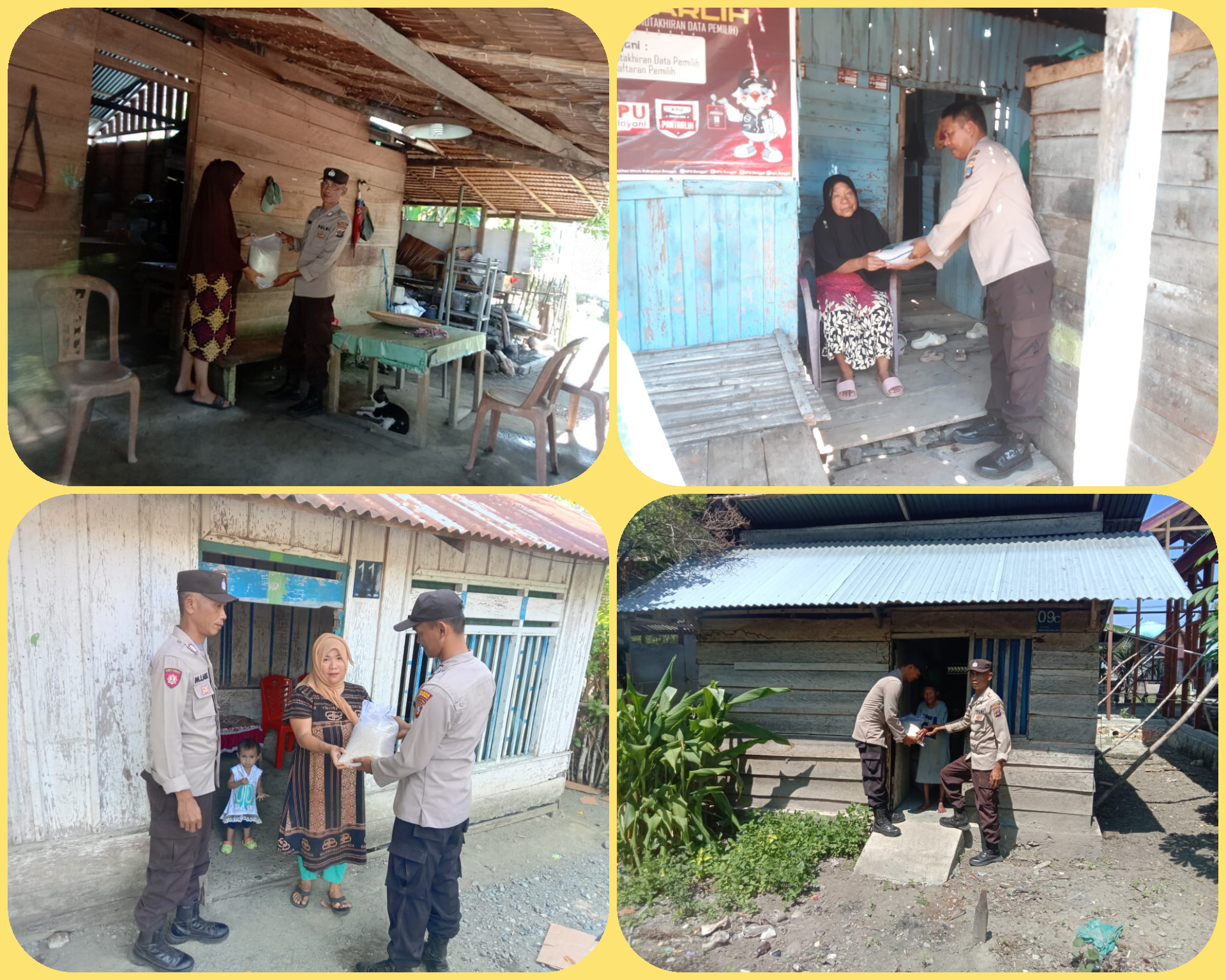 “Meskipun nilainya tidak seberapa, ini merupakan bentuk silahturahmi dan rasa empati kami kepada warga kurang mampu di sekitar kami, dalam menyikapi kenaikan harga komoditi beras di Banggai,” kata Kapolsek.