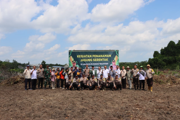 Adhyaksanews. -- -- Bangka Barat. Polres Bangka Barat bersama unsur Forkopimda dan masyarakat melaksanakan kegiatan Penanaman Jagung Serentak dalam rangka mendukung Swasembada Pangan Tahun 2025 di lahan Pondok Pesantren Ta'limul Muta'alim, Desa Air Kuang, Kecamatan Jebus, Kabupaten Bangka Barat. Rabu 6 Agustus 2025