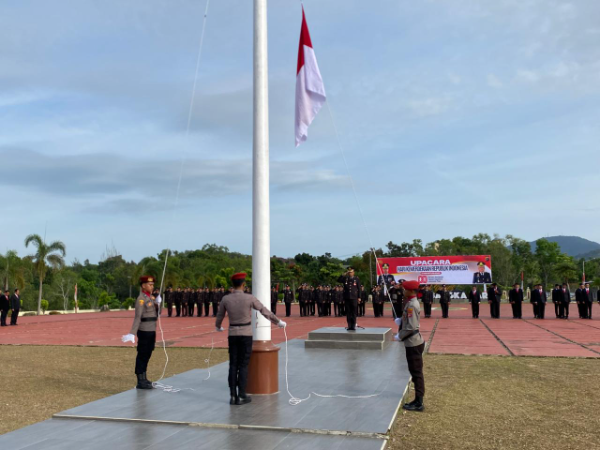 Upacara tersebut dipimpin langsung oleh Wakapolres Bangka Barat Kompol Albert D. H. Tampubolon dan diikuti oleh seluruh Pejabat Utama (PJU) serta personel Polres Bangka Barat.