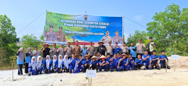 Adhyaksanews. -- -- Bangka Belitung. Dalam rangka mendukung program penghijauan dan pelestarian lingkungan, Polres Bangka Barat bersama unsur pemerintah desa dan pelajar melaksanakan kegiatan “Ketahanan Bumi Serumpun Sebalai dengan Penanaman Sejuta Pohon” di lahan eks tambang Desa Air Putih, Kecamatan Mentok, Kabupaten Bangka Barat, pada Selasa (29/4/2025).