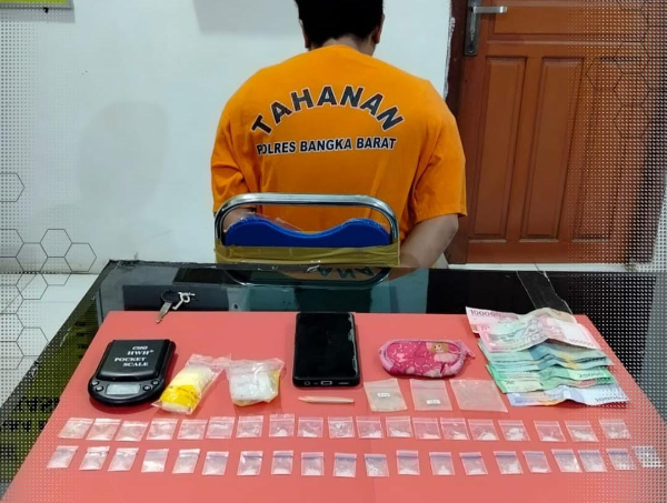 petugas berhasil mengamankan seorang pria berinisial A (32) di Gang Rambutan, Kelurahan Tanjung, Kecamatan Mentok, yang kedapatan membawa puluhan paket sabu siap edar.