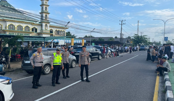 Personel Polres Bangka juga tidak hanya melakukan penjagaan di area masjid, tetapi juga melaksanakan pengaturan lalu lintas serta patroli di sekitar lokasi ibadah.