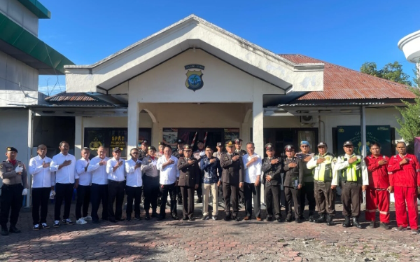 Bitung, Adhyaksanews. -- --Polres Bitung dan Polsek jajaran menggelar upacara bendera dalam rangka memperingati Hari Ulang Tahun (HUT) Republik Indonesia ke-80 secara serentak di 7 lokasi yang berbeda. Upacara ini dipimpin oleh Pejabat Utama (PJU) Polres Bitung sebagai Inspektur Upacara di masing-masing lokasi. Minggu (17/8/2025)
