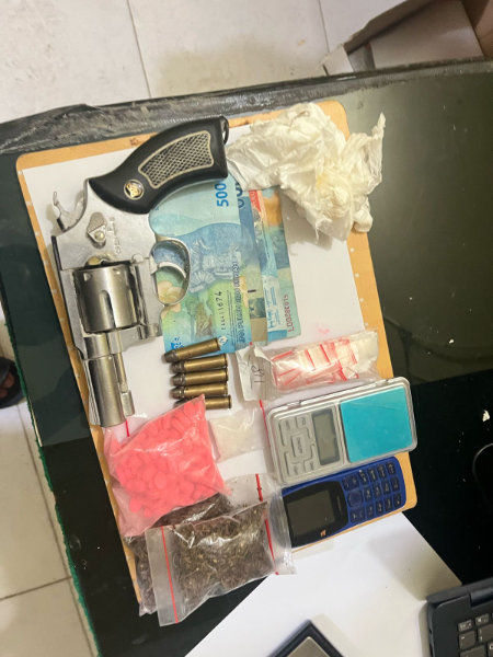Selain itu, petugas juga menyita satu unit handphone merk Nokia, satu unit timbangan digital, uang tunai senilai Rp. 200.000 yang terdiri dari empat lembar pecahan Rp. 50.000, satu pucuk senjata softgun jenis revolver aktif, lima butir peluru mimis berbentuk peluru revolver, serta satu tas hitam merk Polo Expert Pie.