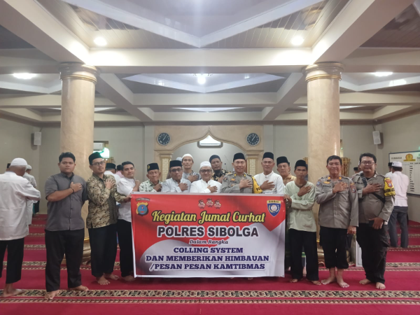 Adhyaksanews. -- --SIBOLGA - Untuk lebih mendekatkan diri kepada Masyarakat dan mendengarkan keluhan mereka secara langsung, Kapolres Sibolga AKBP Eddy Inganta, SH, SIK, MH, yang mewakili Kapolsek Sibolga Selatan AKP Pennedi Sihotang, Kasat Binmas Polres Sibolga AKP Martua Sinaga, Kasihumas Polres Sibolga AKP Suyatno dan Kasium Polsek Sibolga Sambas IPDA HB. Siagian, mengadakan kegiatan "Jumat Curhat" di Masjid Taqwa Muhammadiyah Aek Manis Sibolga, Jalan KHA. Dahlan Kelurahan Aek Manis Kecamatan Sibolga Selatan, Kota Sibolga, Jumat (18/04/2025).