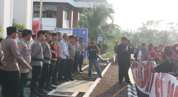 Manado, Adhyaksanews. -- --Polresta Manado melakukan pengamanan terhadap aksi damai yang digelar oleh Aliansi Masyarakat Peduli Lingkungan di Kantor Pengadilan Tata Usaha Negara (PTUN) Manado, Kelurahan Kima Atas, Kecamatan Mapanget, Kota Manado, Senin (20/10/2025) sore.