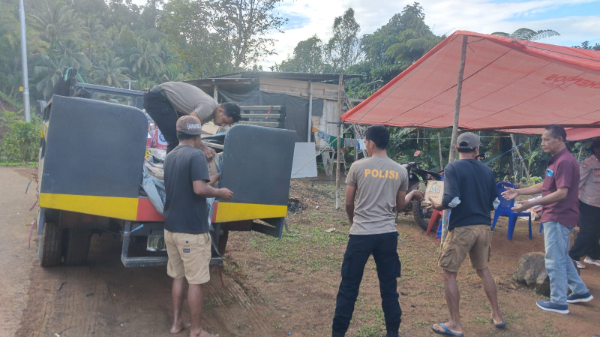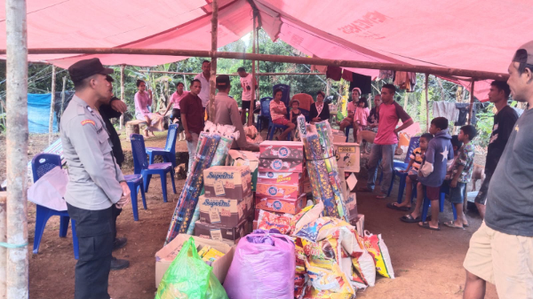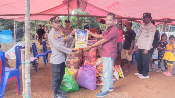 Penyerahan bantuan dilakukan secara simbolis oleh Kapolsek Loloda, IPDA Ibrahim La Ja’a, kepada Kepala Desa Totala Jaya dan perwakilan warga pengungsi. Bantuan yang diberikan meliputi pakaian layak pakai, selimut, tikar, beras, mi instan, gula, telur, susu bayi, susu konsumsi, hingga kopi dan kebutuhan pokok lainnya.