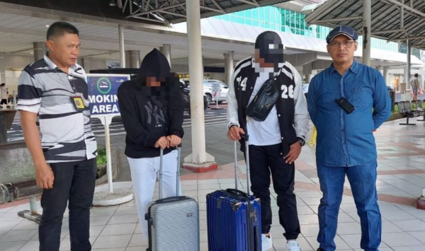 Adhyaksanews. -- - Manado – Dua orang penumpang pesawat dengan tujuan Makassar – Surabaya – Jakarta diamankan oleh anggota Polsek Kawasan Bandara Sam Ratulangi Manado. Keduanya diduga kuat akan diberangkatkan ke Kamboja untuk bekerja sebagai admin situs judi online.