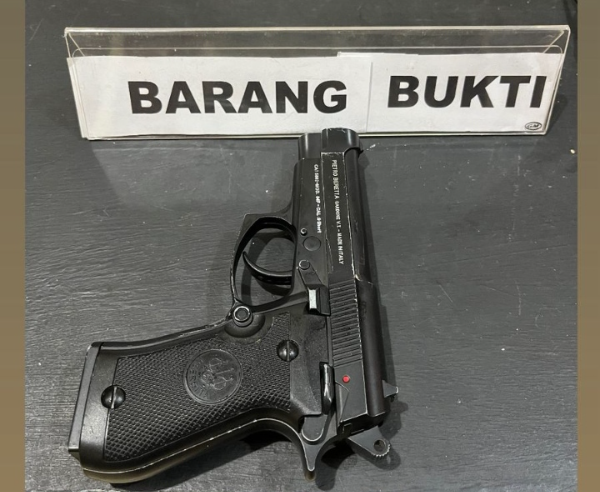 Dalam pengungkapan kasus ini, polisi mengamankan barang bukti berupa satu pucuk airsoft gun warna hitam merek Pietto Baretta serta satu unit sepeda motor Honda Kharisma tanpa nomor polisi.