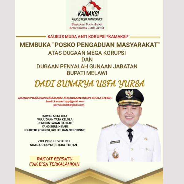 "Atas dasar keprihatinan dan semangat juang Aktivis KAMAKSI, beberapa waktu lalu KAMAKSI telah menggelar sejumlah aksi demonstrasi di KPK dan Kejagung serta menginisiasi pembentukan Posko Pengaduan Masyarakat atas dugaan kasus mega korupsi Bupati Melawi. Diharapkan Posko Pengaduan ini menjadi wadah bagi masyarakat untuk melaporkan segala informasi dan data tentang dugaan korupsi dan penyalahgunaan wewenang Bupati Melawi. Alhamdulillah sejak launching Posko Pengaduan ini telah mendapat antusias masyarakat dengan adanya beberapa informasi dan laporan yang diberikan masyarakat agar dugaan kasus mega korupsi Bupati Melawi segera ditindak lanjuti Lembaga Anti Rasuah hingga tuntas," ungkap Iqbal Wakil Sekretaris Jenderal (Wasekjend) DPP KAMAKSI.