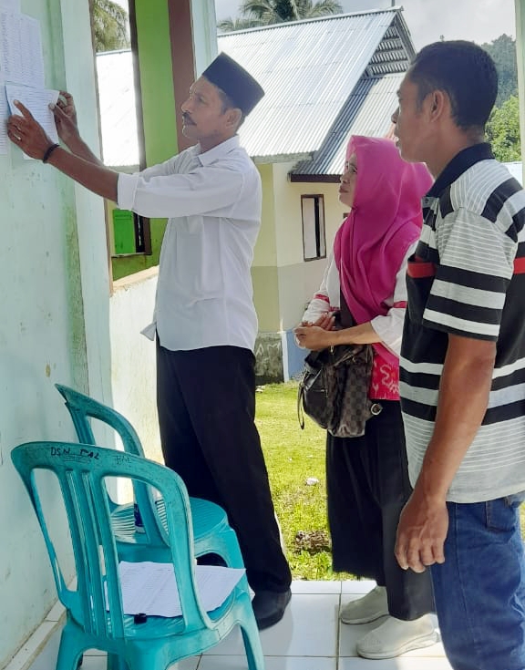 Ketua Pps desa Liang Sulaeman Lamuma bersama anggota Andi Yusuf dan staf pps Mujarmin yang di dampingi Pkd Liang Alma Moidady Pasman.melakukan pengumuman di 4 Tps desa Liang.
