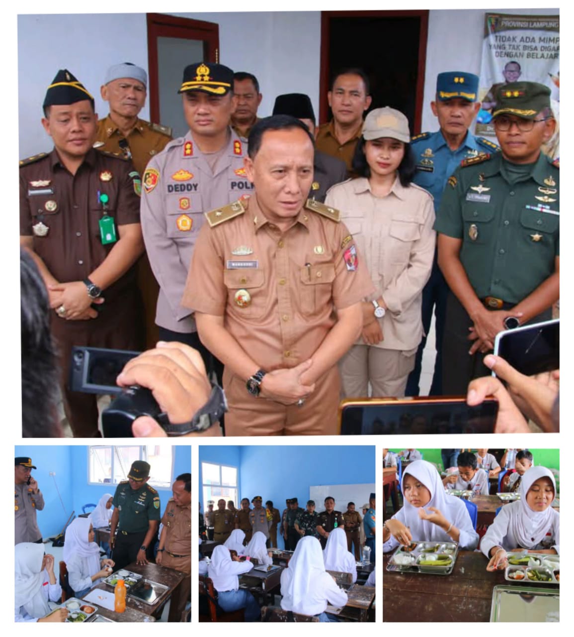 Adhyaksanews. Lampung Utara, Program Makan Bergizi Gratis (MBG) yang diinisiasi oleh Presiden Prabowo Subianto resmi diluncurkan di Kabupaten Lampung Utara. Penjabat (Pj) Bupati Lampung Utara, Drs. H. Aswarodi, M.Si., diwakili oleh Asisten 1, Drs. Mankodri, bersama Forkopimda, yaitu Kapolres Lampung Utara, AKBP Deddi Kurniawan, S.I.K., Dandim 0412/Lampung Utara, Letkol Inf Heri Eko Prabowo, Kakimal Lampung Utara, Letkol Laut Herman Sobli, dan perwakilan Kejaksaan Negeri Lampung Utara, Janjang Guntoro S., Dan Sekretaris Dinas Kominfo Luzirwan, meninjau langsung pelaksanaan program ini di Kecamatan Bukit Kemuning.