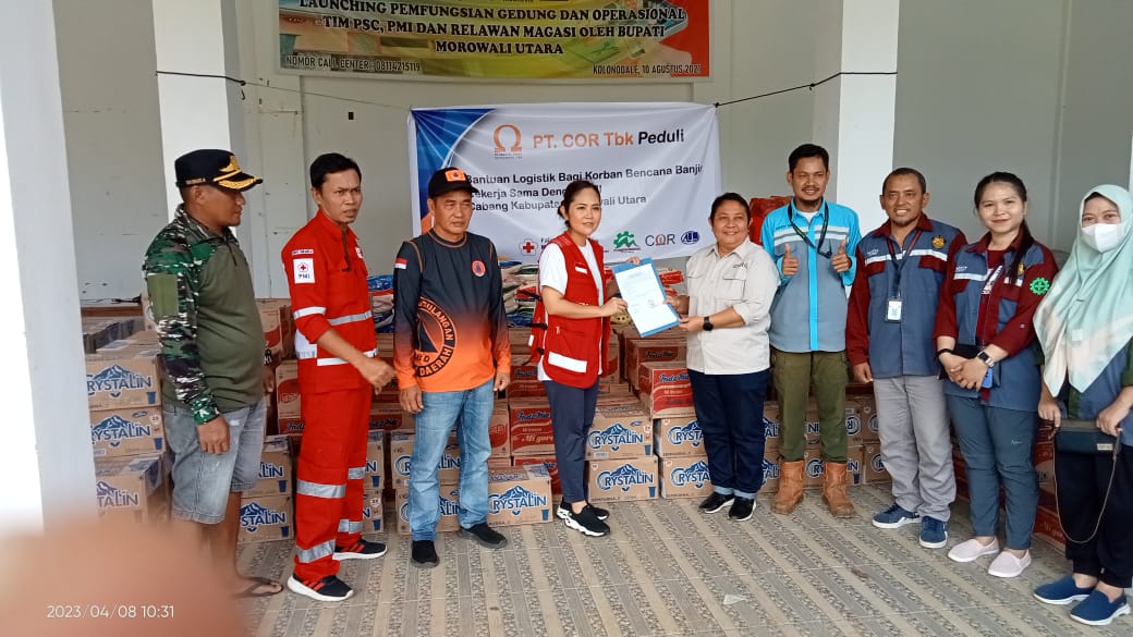 PT Central Omega Resources ( COR) Tbk menyerahkan bantuan Sembako kepada Palang Merah Indonesia ( PMI) Cabang Morowali Utara ( Morut), untuk disalurkan kepada warga terdampak banjir yang ada di sejumlah Desa di Kecamatan Petasia Barat dan Petasia Timur.