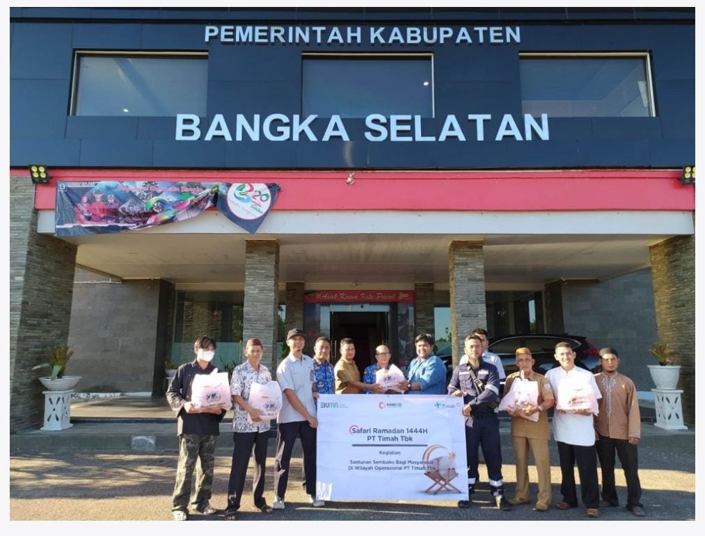 PT Timah Tbk Serahkan Ribuan Paket Sembako untuk Warga Bangka Selatan Jelang Lebaran IdulFitri 1444 Hijriah