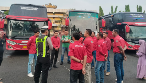 Lampung Utara, Adhyaksanews. -- -- Satuan Lalu Lintas Polres Lampung Utara melaksanakan kegiatan Polisi Menyapa dengan memberikan imbauan keselamatan berkendara kepada para pengemudi dan awak bus Sumatera Express (Sumex), Kamis (23/4/2026).