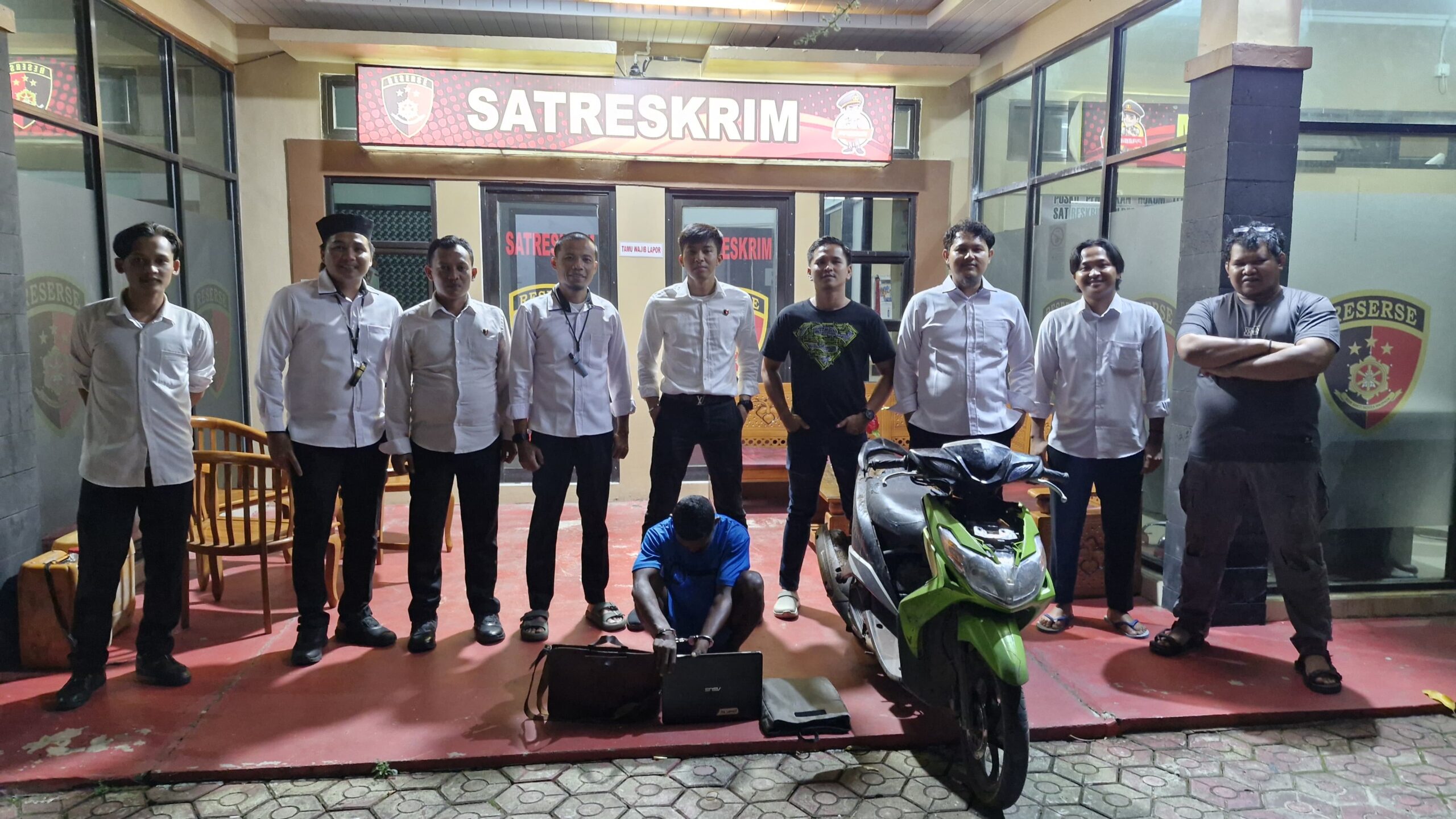 “Dari kedua pelaku, polisi berhasil mengamankan sejumlah barang bukti, termasuk dua unit laptop Asus, satu buah tas hitam, satu buah obeng, satu buah kotak laptop Asus, satu buah cas laptop Asus beserta mousenya, satu buah tas laptop warna coklat cream, dan satu unit sepeda motor yamaha Xeon warna hitam lis hijau,” ucap Ipda, GJ Budi.