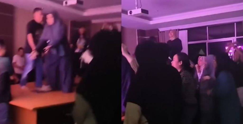 Dalam video berdurasi 51 detik, terlihat beberapa orang berjoget di atas meja, diiringi musik, dan melakukan aksi sawer uang, dengan botol minuman keras di atas meja.