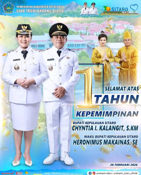 CHINTYA INGGRID KALANGIT, SKM, tidak terasa hari ini 20 Februari 2026 sudah setahun menakhodai negeri yang di juluki Karangetang, Mandolokang, Kolo-kolo, yaitu Kabupaten yang terbentuk dalam deretan 47 pulau, yang juga adalah sebuah daerah indah di utara bibir Pasifik. Kabupaten yang mempunyai Jargon Pemerintahan "MASADADA" (Maju, Sejahtera, Damai dan Dahsyat). Satu-satunya kepala daerah wanita di Sulawesi Utara ini, di beri julukan oleh masyarakat Sitaro "Srikandi Dari Nusa Utara." Pribadi pemimpin wanita yang tidak pernah tinggal diam dan dan tak pernah takut, walaupun daerah yang di pimpinnya adalah sebuah daerah kepulauan yang banyak kali harus berjibaku dan berhadapan dengan keras ombak lautan.
