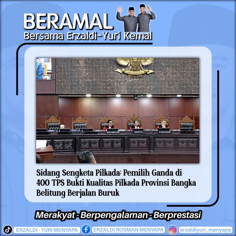 Adhyaksanews. Sidang gugatan Pilkada Provinsi Bangka Belitung memasuki pembuktian di Mahkamah Konstitusi (MK) pada Senin (10/2). Pihak pemohon, Pasangan calon Gubernur dan Wakil Gubernur Kepulauan Bangka Belitung Nomor Urut 1, Erzaldi Rosman dan Yuri Kemal Fadlullah, menghadirkan dua ahli di persidangan.