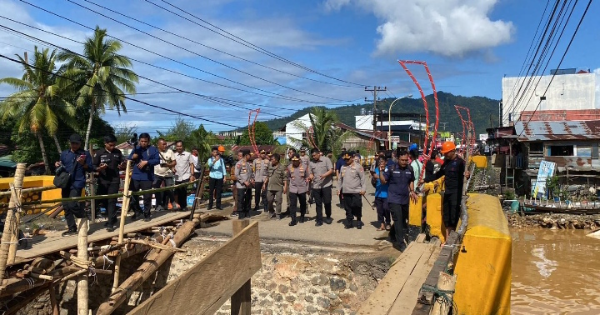 Selanjutnya, Kapolri, didampingi Dankor Brimob Polri Komjen Pol. Ramdani Hidayat, Pejabat Utama Mabes Polri, serta Ketua Umum Bhayangkari, melaksanakan peninjauan lanjutan ke Jembatan Putus (Jembatan Halangan) di Jalan Lintas Sibolga–Padang Sidempuan. Pada lokasi tersebut, Kapolri memastikan percepatan penanganan infrastruktur terdampak sekaligus menyerahkan bingkisan kepada masyarakat di sekitar titik jembatan terputus.