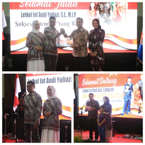 Adhyaksanews. -- -- Cilacap - Lepas Sambut Komandan Kodim 0703/Cilacap dari Letkol Inf Andi Yuliazi, S.E., M.I.P., kepada penggantinya, Letkol Inf Andi Aziz, S.Hub.Int. berlangsung meriah yang bertempat di Pendopo Wijayakusuma Cakti, Kabupaten Cilacap, Kamis (8/5/2025) malam.