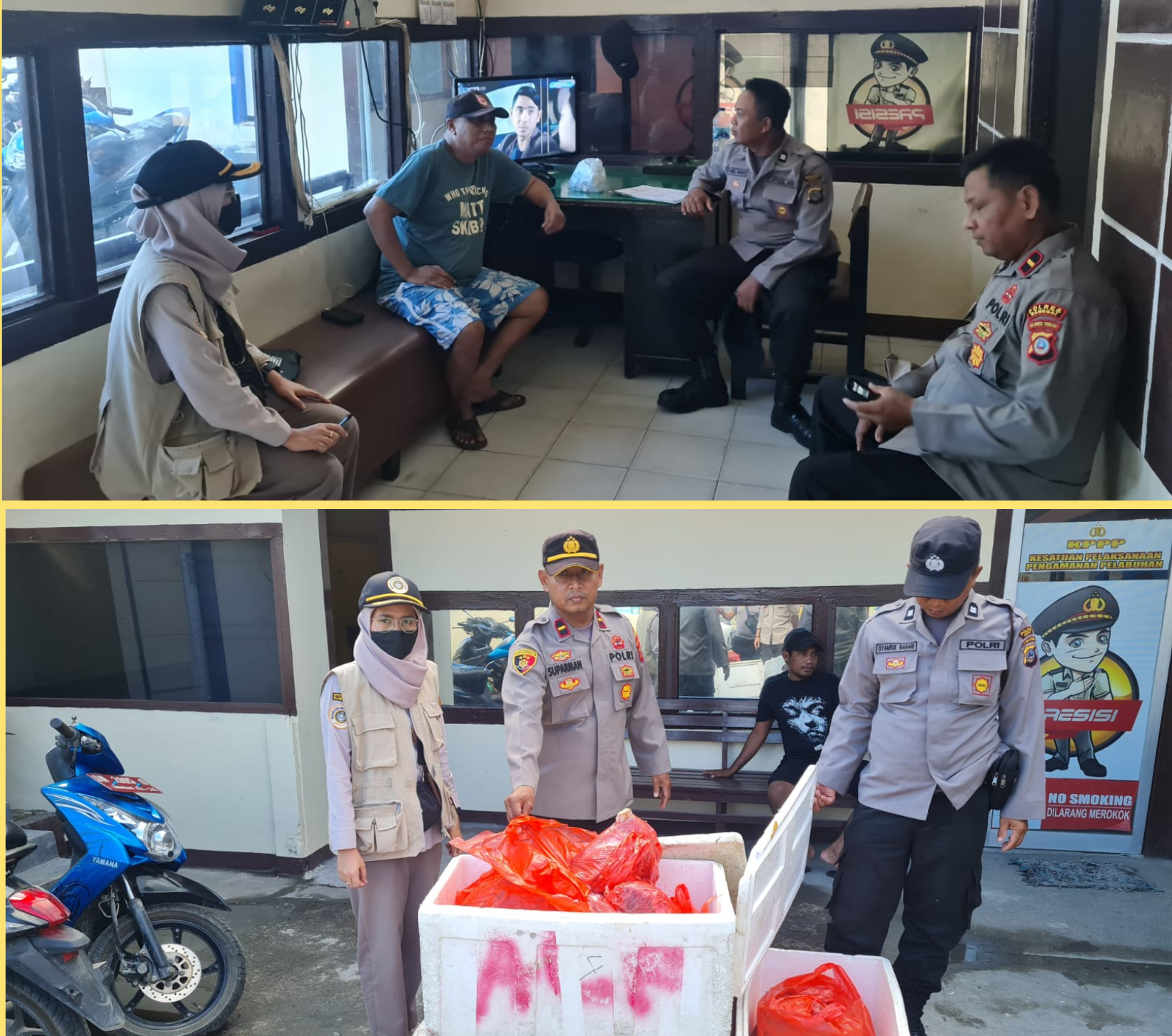 Subsektor KP3 Pelabuhan Polsek Luwuk mendampingi Karantina Pertanian Kelas II Palu wilayah Luwuk melakukan tindakan penolakan terhadap daging sapi sebanyak 90 kg dari Kabupaten Sanana, Maluku melaui Pelabuhan Lalong Luwuk, Selasa (11/4/2023).