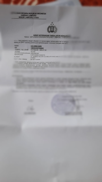 Adhyaksanews. -- -- Lampung Utara. STNK Nopol.BE 6582 JZ Noka MH8BF45C49J165956 Nosin.F4961D333585.An.Cici Irma Sari.
