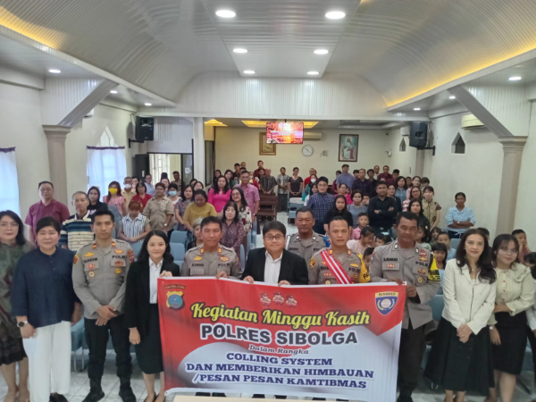 Adhyaksanews. -- --SIBOLGA - Pada Minggu 13 April 2025, Gereja Kalam Kudus Sibolga Jalan Sibolga Baru Kelurahan Pancuran Kerambil Kecamatan Sibolga Sambas, Kota Sibolga, dipenuhi kehangatan dan kasih sayang saat Polres Sibolga menggelar acara Minggu Kasih. Kegiatan ini dipimpin oleh Kapolres Sibolga AKBP Eddy Inganta, SH, SIK, MH, diwkili Kasat Binmas Polres Sibolga AKP Martua Sinaga, Kasat Narkoba Polres Sibolga AKP Rahmad R. Hutagaol, SH, MH dan KBO Sat Lantas Polres Sibolga IPTU Marwa Siregar, bersama jajaran Personil Polres Sibolga yang lain.