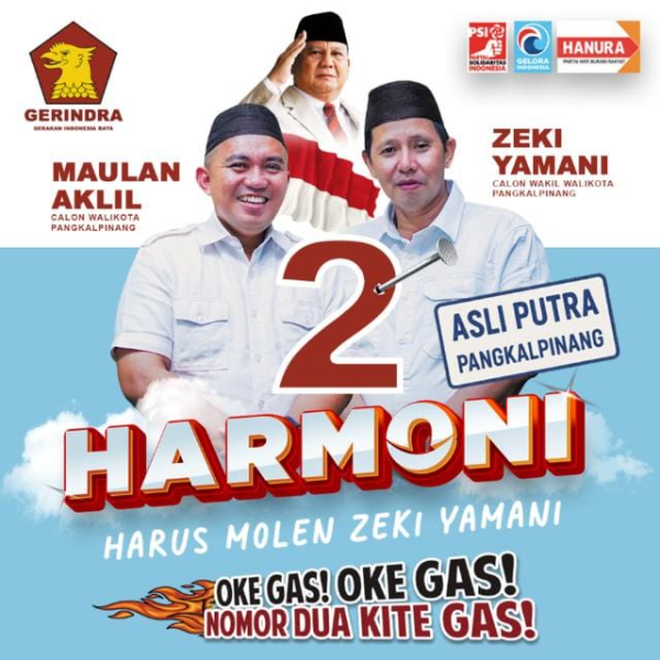 Sementara pasangan nomor urut dua, Maulan Aklil (Molen) dan Zeki Yamani, membawa slogan “HARMONI”. Molen merupakan dosen tetap di Program Magister Manajemen UNIPER, dan Zeki adalah alumni Fakultas Hukum UNIPER, baik program Sarjana maupun Magister. Zeki juga meraih suara tertinggi kedua dalam Pileg DPRD Pangkalpinang 2024–2029, sedangkan Molen adalah mantan Walikota Pangkalpinang.