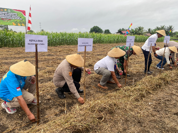 Adhyaksanews. -- -- Maluku Utara. HUMAS POLRES HALUT, Untuk mendukung program ketahanan pangan nasional, Polres Halmahera Utara menggelar kegiatan Penanaman Jagung Serentak Kuartal III yang bertempat di lahan Desa Kali Pitu Kecamatan Tobelo Tengah Kabupaten Halmahera Utara, Maluku Utara, Rabu (9/7/25)