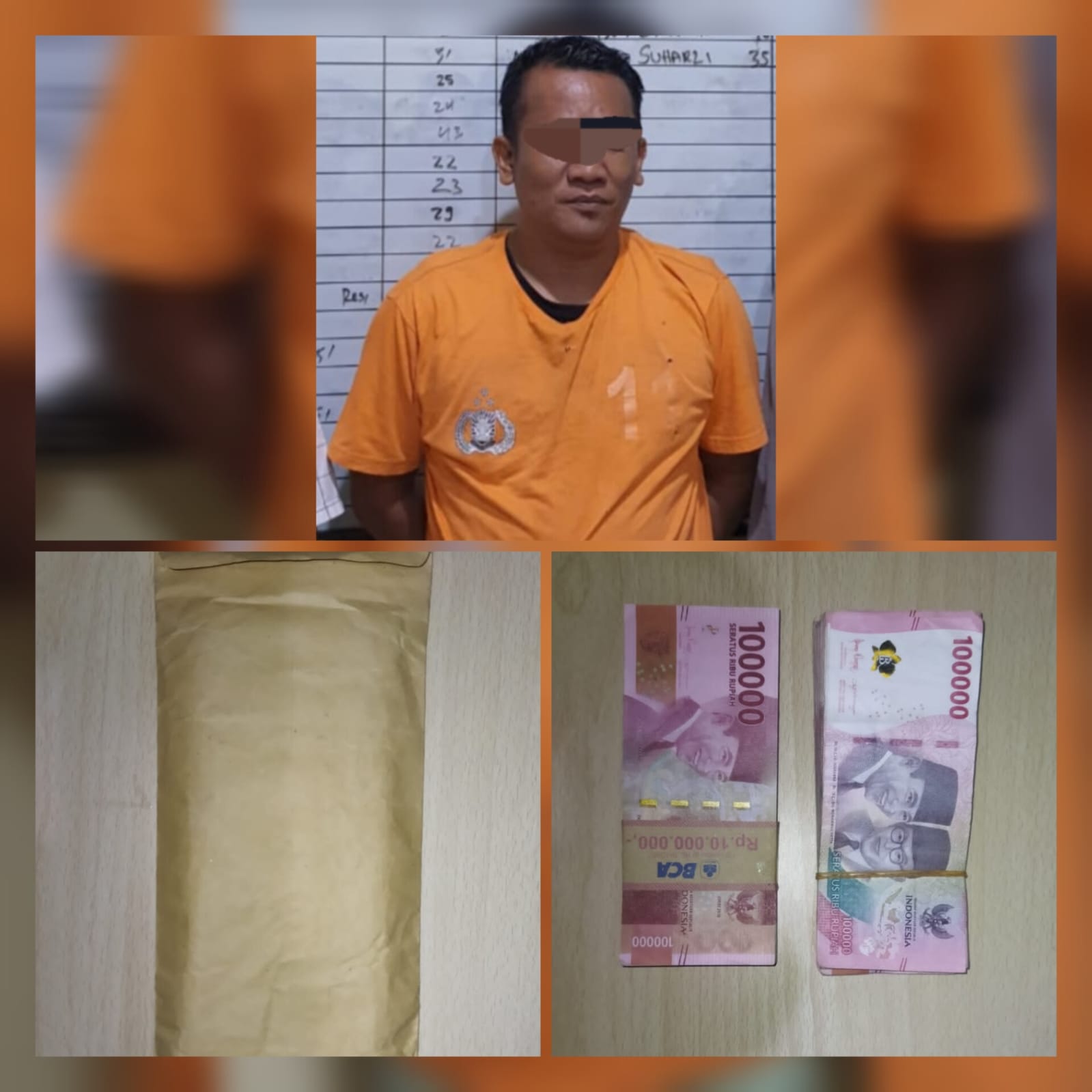 Usai diamankan, pelaku Sudarsono alias Panjul berikut barang bukti berupa 1 buah amplop warna cokelat yang berisakan uang pecahan 100 ribu sebanyak 200 lembar langsung dibawa ke Mapolresta Pangkalpinang.
