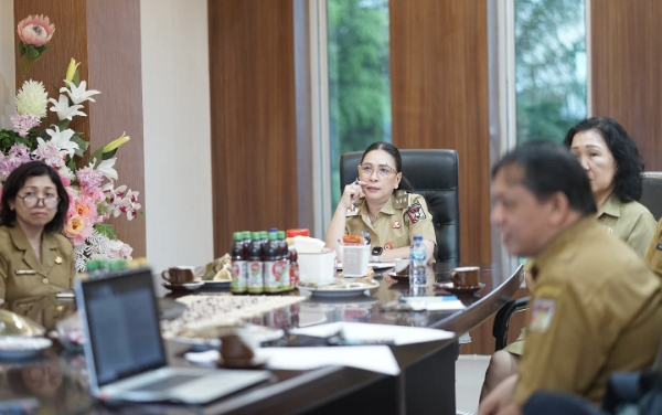 Minahasa, Adhyaksanews. -- --Wakil Bupati Minahasa, Ibu Vanda Sarundajang, S.S., mengikuti kegiatan koordinasi pengawasan keamanan pangan dalam pelaksanaan Program Makanan Bergizi Gratis (MBG) yang diselenggarakan oleh Kementerian Kesehatan Republik Indonesia. Kegiatan ini dilaksanakan secara virtual melalui Zoom Meeting dan diikuti dari ruang kerja Wakil Bupati.