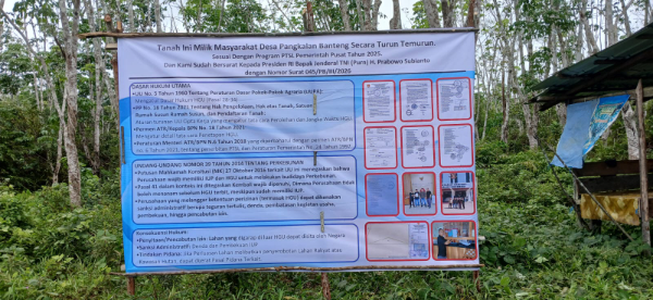 Aksi pemasangan plang ini merupakan buntut dari belum dibagikannya sertifikat hak milik tanah melalui program Pendaftaran Tanah Sistematis Lengkap (PTSL) oleh Kantor Pertanahan (Kantah) ATR/BPN Kabupaten Kotawaringin Barat kepada warga yang merasa berhak atas lahan tersebut.